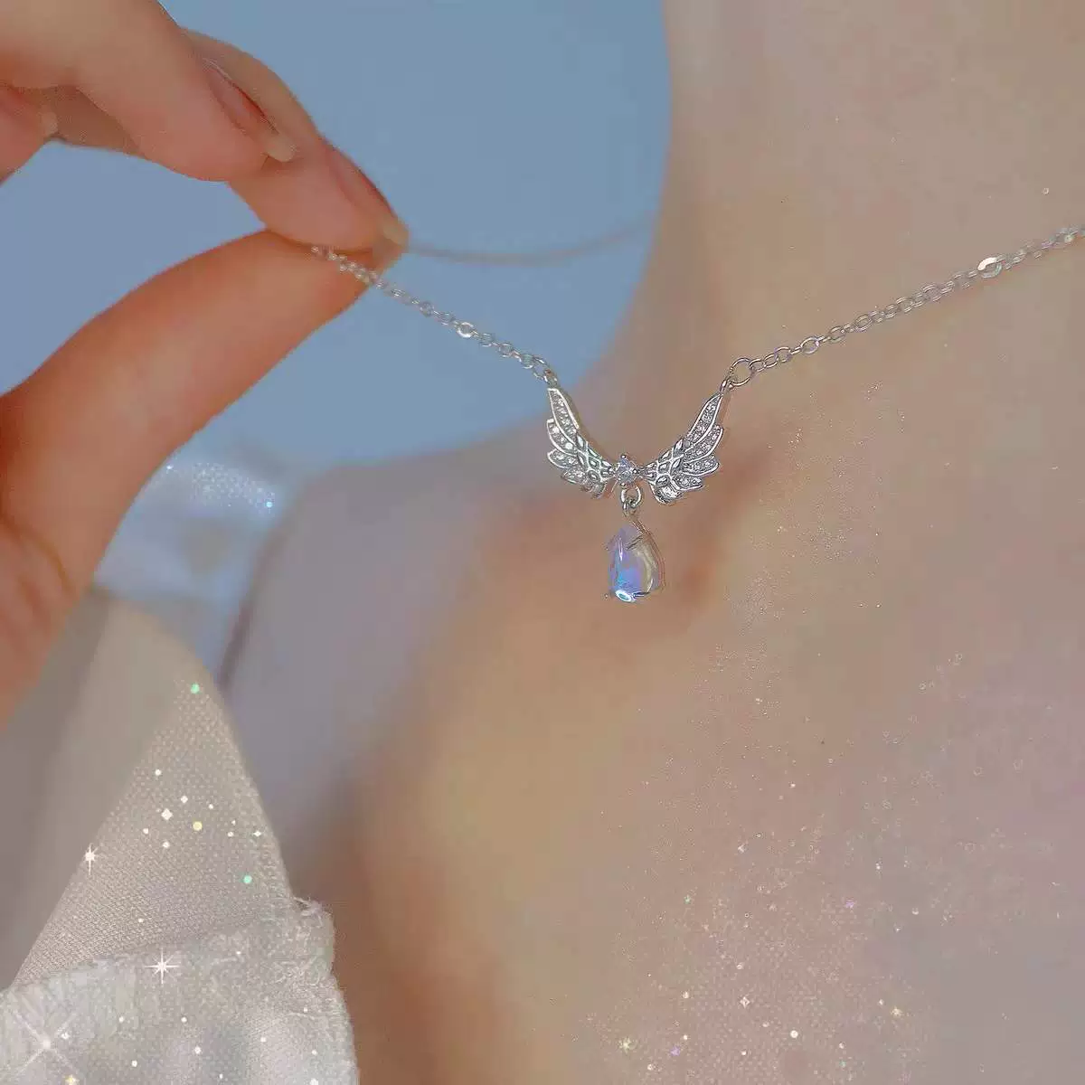 قلادة أجنحة الملاك قلادة نسائية من حجر القمر بسلسلة الترقوة للنساء