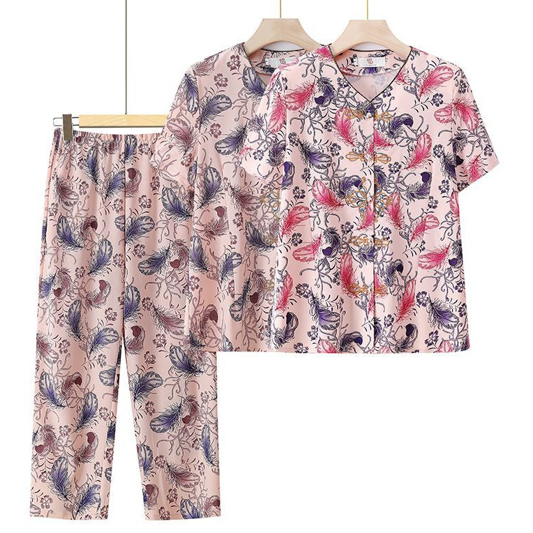 الجدة ملابس الصيف الحرير الجليد بدلة بأكمام قصيرة في منتصف العمر وكبار السن الملابس النسائية الأم بأكمام قصيرة زوجة الرجل العجوز ملابس الصيف سترة