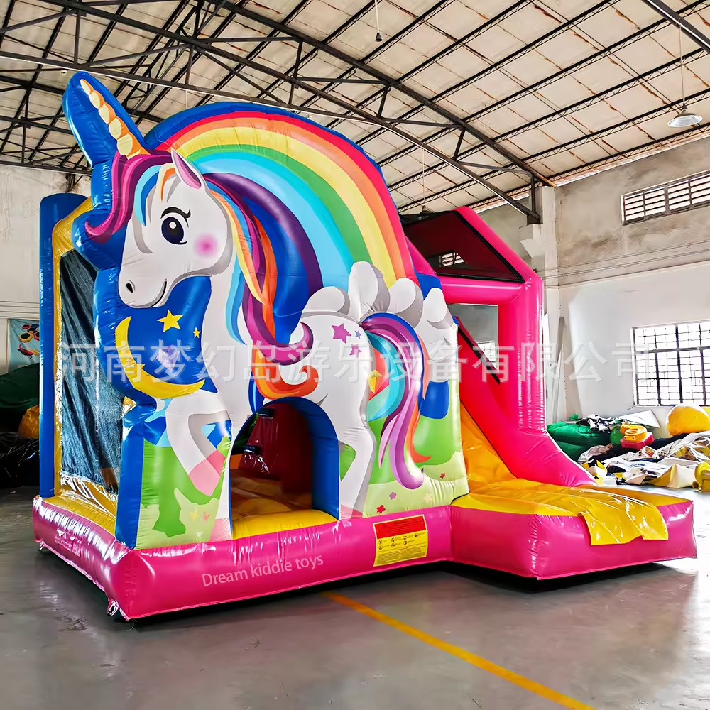 حار PVC قوس قزح نفخ الترامبولين يونيكورن نفخ القلعة شريحة كبيرة الترامبولين كومبو
