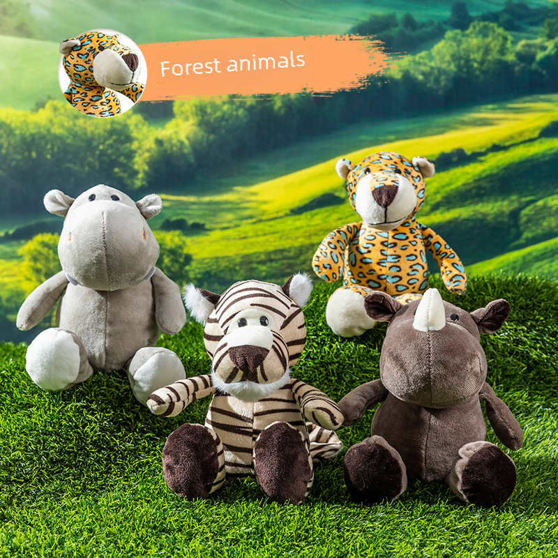 دمية حيوانات الغابة حيوانات الغابة النمر الفهد وحيد القرن فرس النهر ألعاب من نسيج مخملي دمية أطفال بالجملة