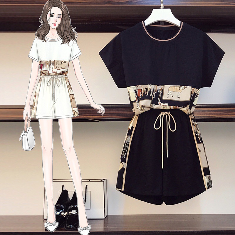الجملة 2024 ملابس نسائية كبيرة الحجم نمط جديد شورت قصير الأكمام طقم مكون من قطعتين بدلة ضيقة شقيقة الدهون موضة مم مم