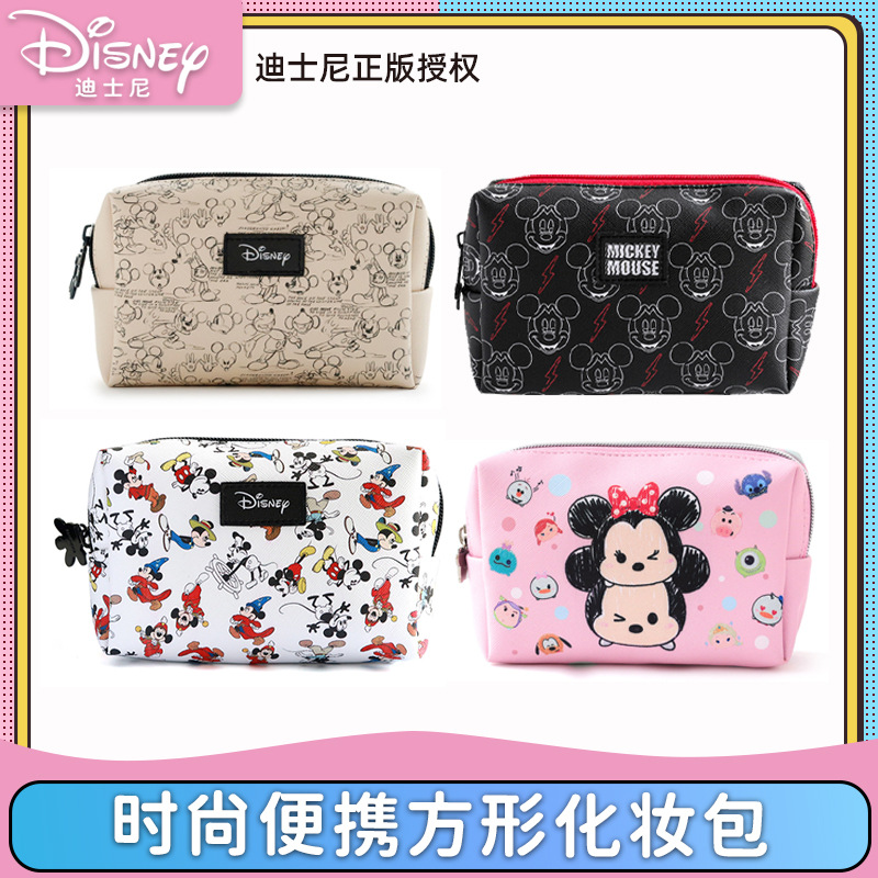 حقيبة مستحضرات التجميل المربعة من ديزني مختارة بدقة، حقيبة تخزين محمولة للسفر، حقيبة غسيل متعددة الوظائف برسومات كرتونية متقدمة