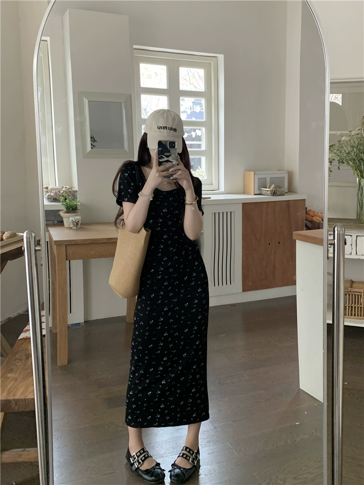 فستان صيفي ذو رقبة مربعة ومطوي بتصميم نحيف مناسب للورك