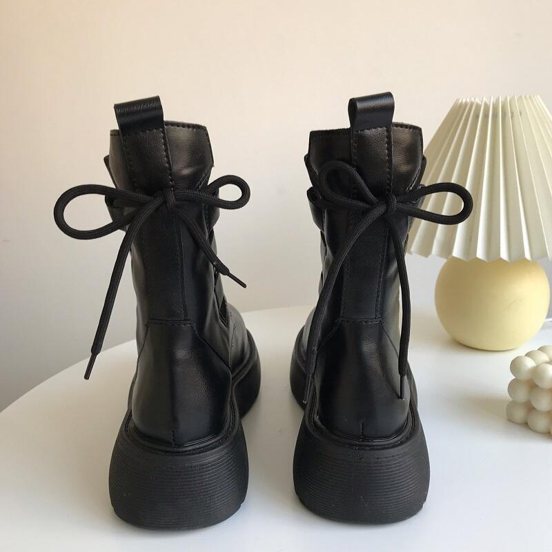 أسود محبوك الدانتيل متابعة مارتن الأحذية النسائية 2024 جديد الصيف حذاء من الجلد النمط البريطاني دراجة نارية حذاء من الجلد عبر الحدود