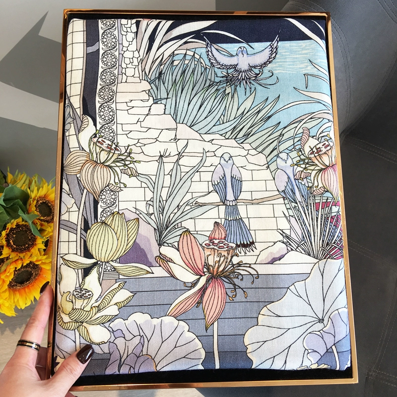 شال سيكريت جاردن فاشن ذو وجهين للنساء من الصوف الحريري