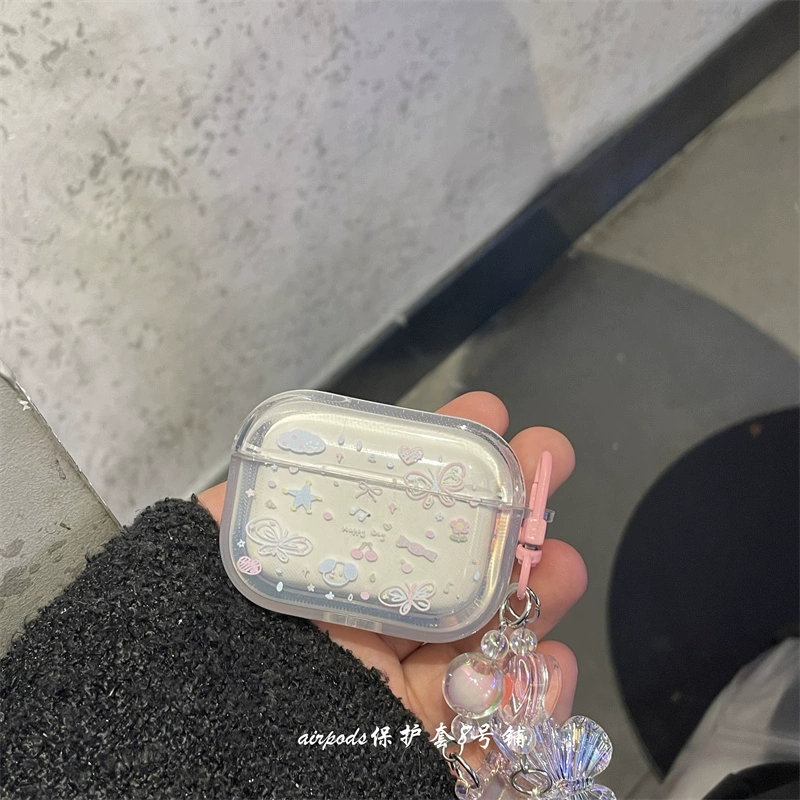 زهور الفراشات في أوائل الربيع على الجدران مناسبة لـ Apple Wireless Bluetooth Airpods Pro1 Generation 2 Generation 3 Generation Contreming Selection Case