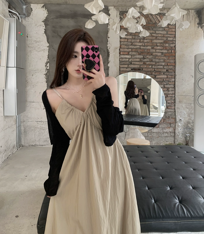 تنورة نسائية صيفية أنيقة بتصميم طويل مع رقبة على شكل حرف V