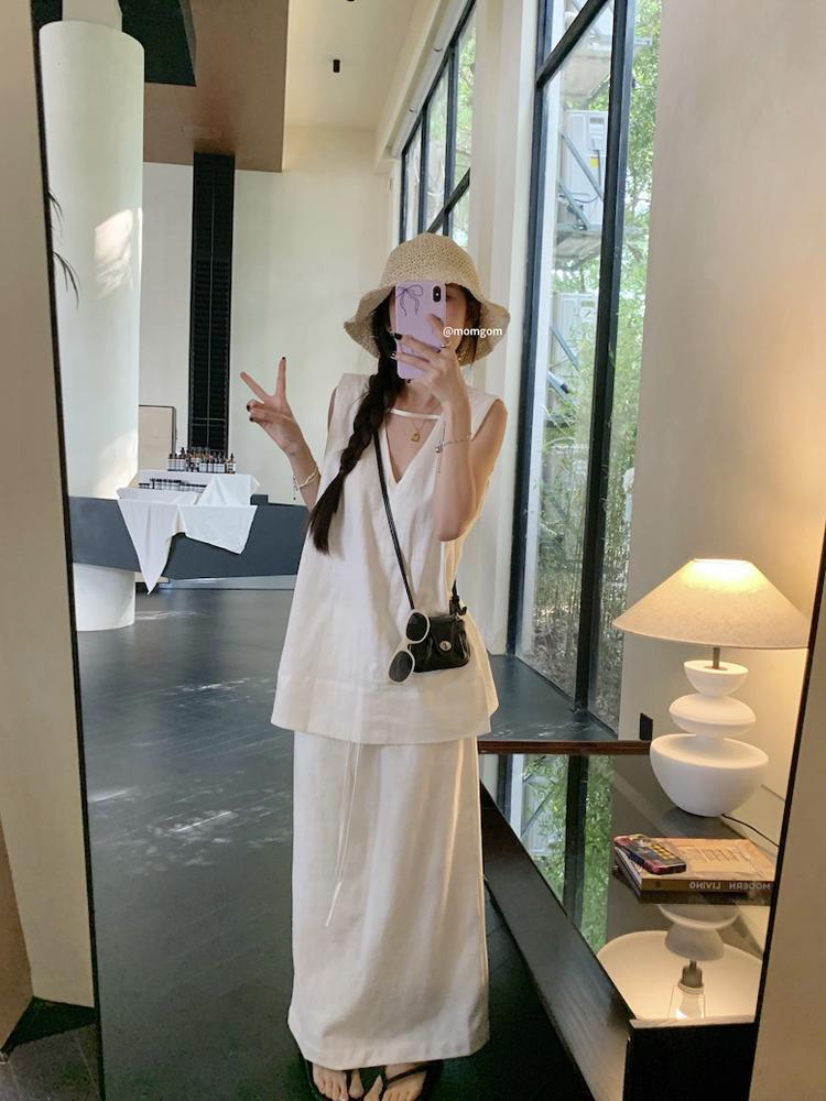 كسول نمط الخامس الرقبة سترة أعلى الرباط الخلفي سبليت تنورة غير رسمية المرأة الصيف بدلة على الموضة جديدة أنيقة