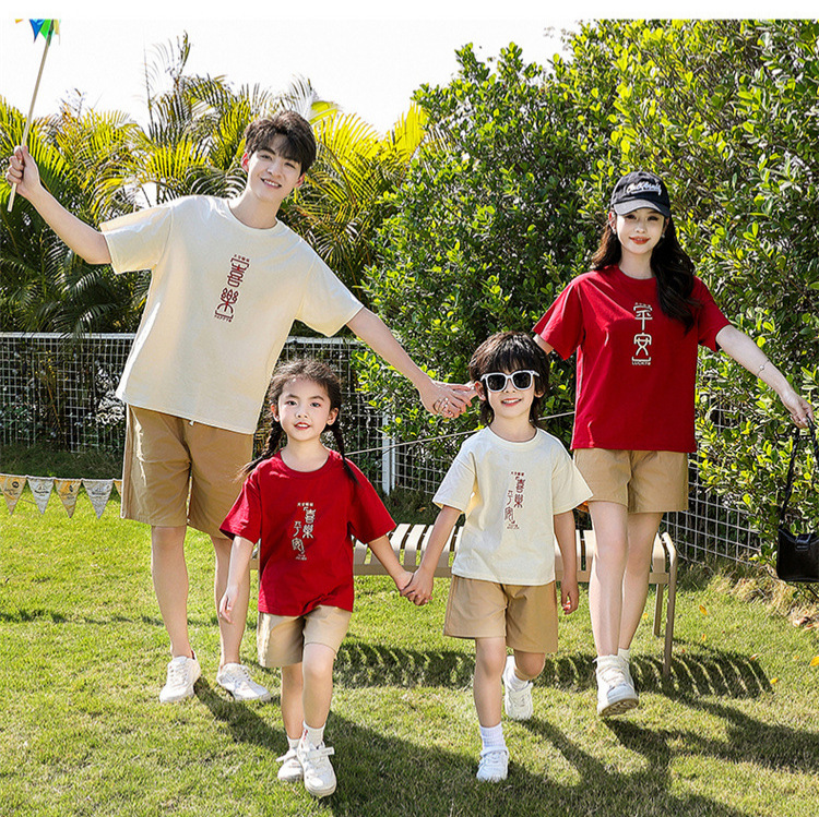 فستان الوالدين والطفل على الطراز الوطني بأكمام قصيرة تي شيرت الأم والطفل أزياء الأم والطفل طباعة النص تي شيرت الوالدين والطفل تي شيرت الأسرة بأكمام قصيرة تي شيرت الوالدين والطفل