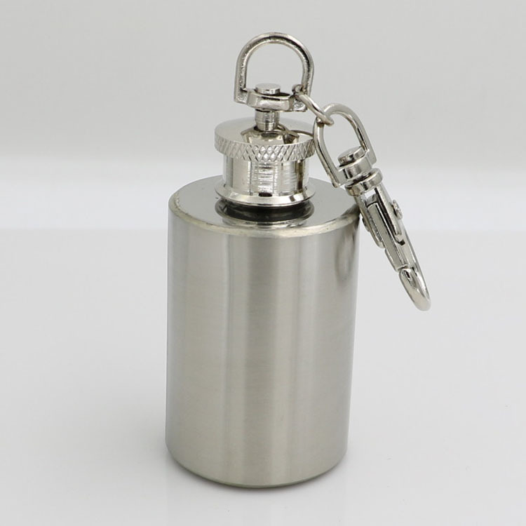 [لفترة طويلة] قارورة الورك الصغيرة المصنوعة من الفولاذ المقاوم للصدأ بسعة 1 أونصة، زجاجة سعوط أسطوانية، سلسلة مفاتيح لوعاء الزيت