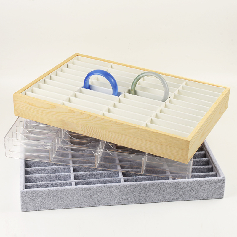 صينية عرض سوار المجوهرات باللون الأبيض الصلب والخشب الرمادي، علبة تخزين الأساور ذات 40 موضعًا، صينية خشبية