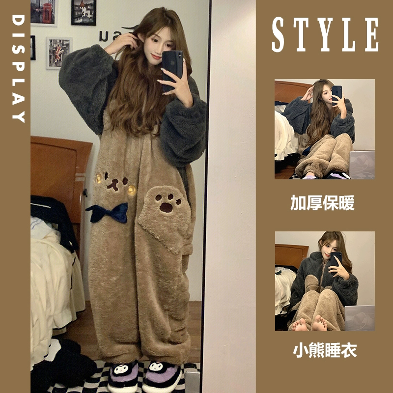 كبيرة الحجم الدببة الرسوم المتحركة كورال المخملية البيجامات الإناث الشتاء بالإضافة