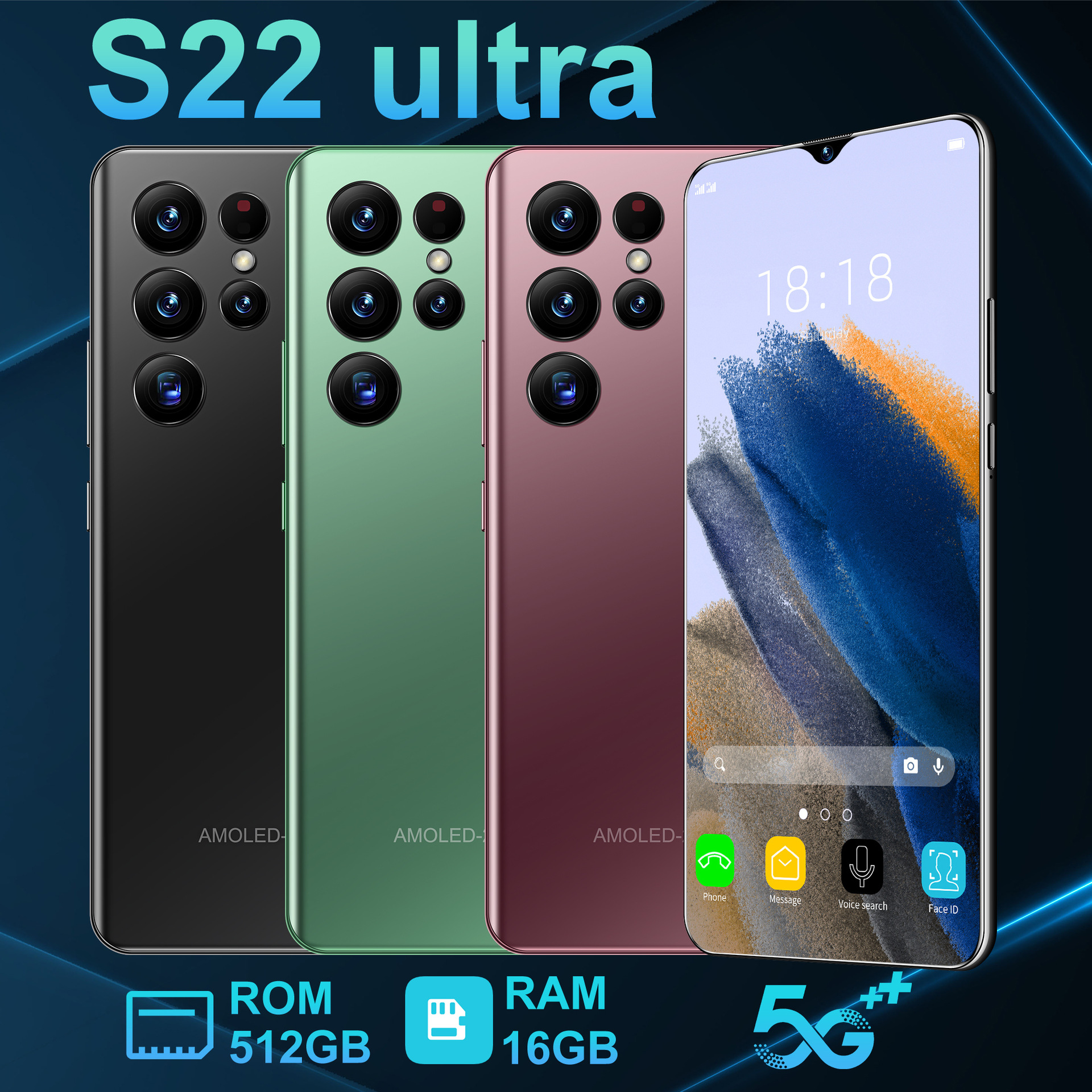 هاتف محمول جديد عبر الحدود S22 Ultra يعمل بنظام أندرويد هاتف ذكي 2+16 شاشة كبيرة 7.3 بوصة انفجارات يد التجارة الخارجية