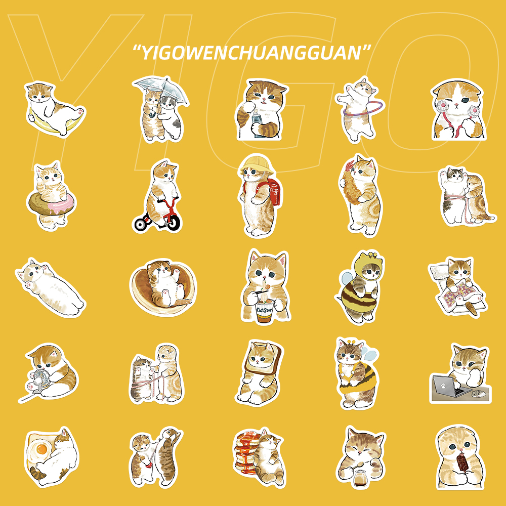 64 ملصقًا جديدًا وبسيطًا على شكل قطة برتقالية لجهاز الكمبيوتر المحمول وكتاب حساب الماء وكوب الماء لجهاز iPad وملصقات مقاومة للماء DIY