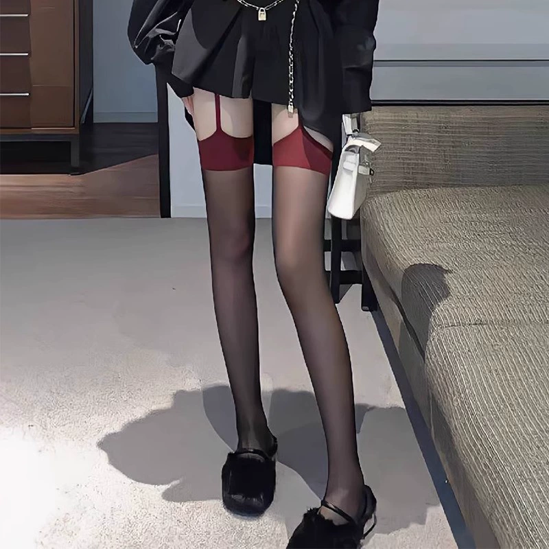 جوارب حريرية مغزولة فوق الركبة بحافة حمراء جوارب مقسمة جوارب نسائية فوق الركبة جوارب رفيعة للغاية عالية الجودة من الحرير الأسود المثير