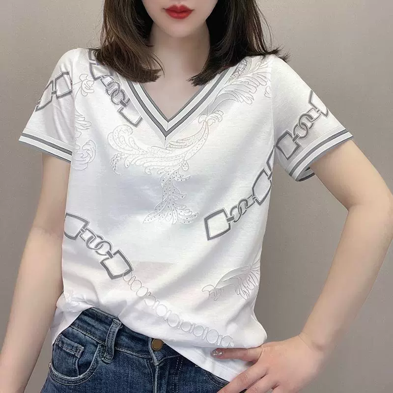 تيشيرت أوروبي برقبة على شكل حرف V حريمي صيفي 2023