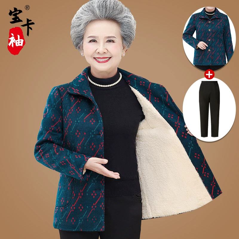 Elderly women’s autumn coats, mother’s long-sleeved velvet thickened warm tops, 70-year-old grandma’s autumn and winter clothes for the elderly