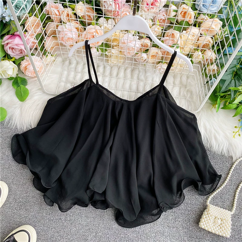 تانك توب أسود بدون أكمام للنساء بمقاس عادي.