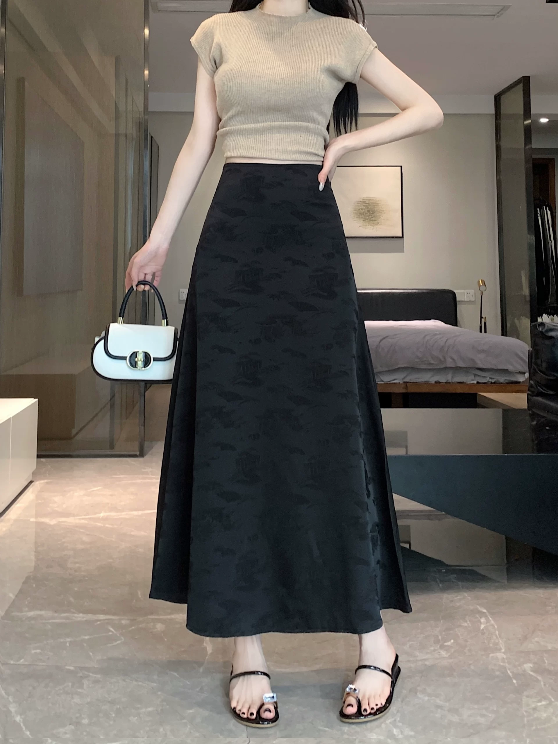 نصيحة الربيع والصيف الزهور الرياح الصينية على التنورة الرجعية الركبة