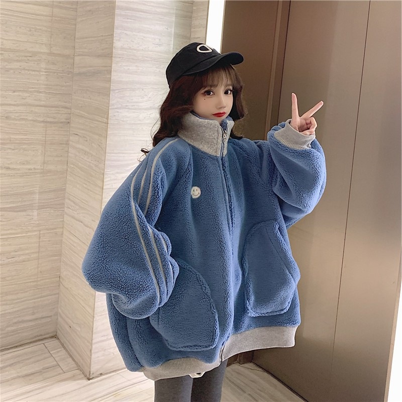 الخريف والشتاء بالإضافة إلى المخملية مبطن تقليد صوف الضأن البيسبول دعوى المرأة فضفاضة الوقوف طوق معطف سترة عبر الحدود المرأة التجارة الخارجية بالجملة