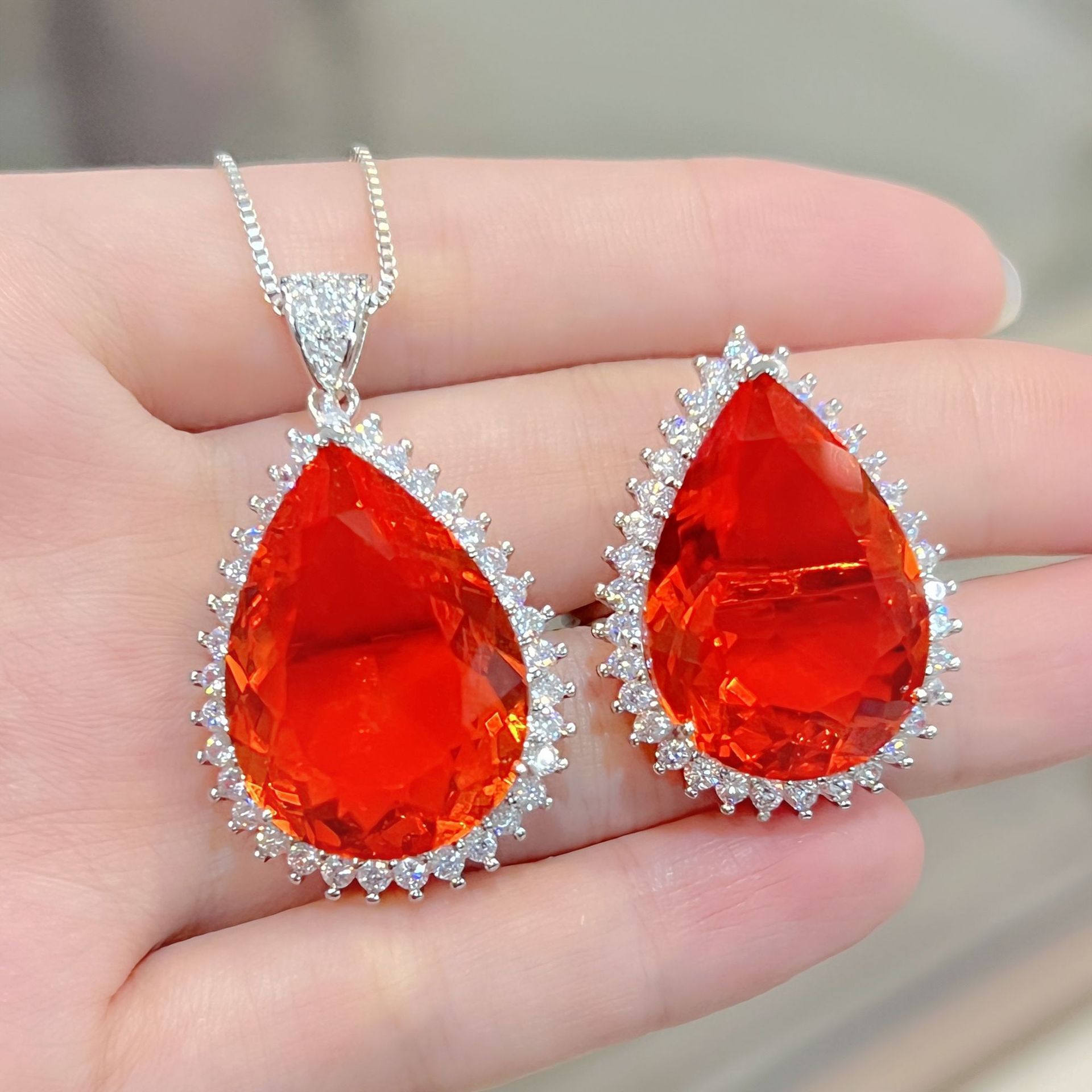 قلادة Tiktok سريعة البث المباشر مطلية بالبلاتين عيار 18 قيراط ومطعمة على شكل قطرة على شكل عش طائر حلزوني على شكل زهرة على شكل زهرة ملونة مرصعة بحلقة من الألماس