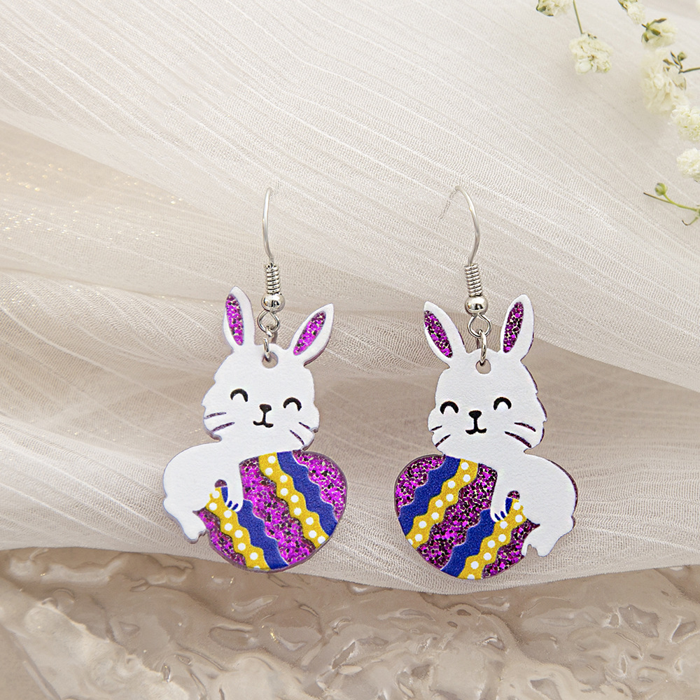 أقراط أرنب لطيفة من الأكريليك الأوروبي والأمريكي عبر الحدود على شكل بيضة أرجوانية جديدة بتصميم إبداعي للأذن