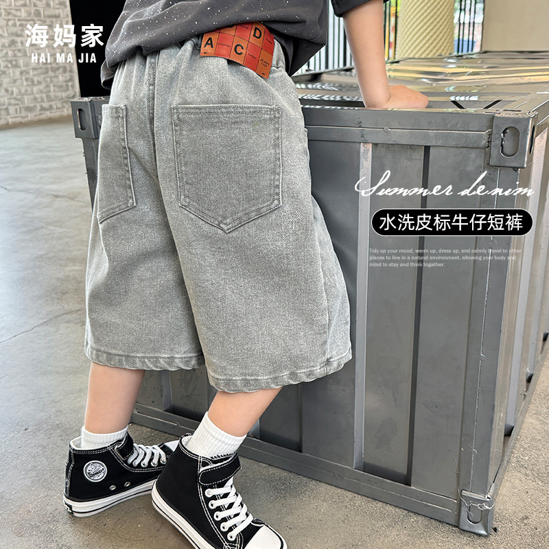 [5.31 صيف هيما الجديد] شورت جينز للأولاد بتصميم عصري من الجلد المغسول من قماش الدنيم ملابس أطفال كورية