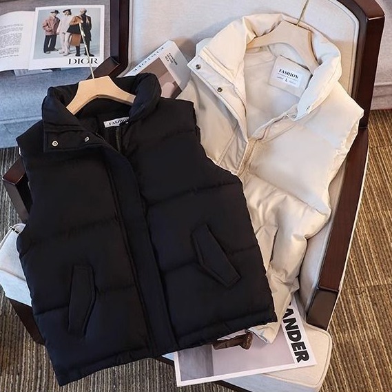 سترة قطنية مختارة للأولاد والبنات صدرية باللونين الأبيض والأسود وياقة ثابتة بدون أكمام للأطفال المتوسطين والكبار، معطف يمكن التخلص منه بجيب كروس
