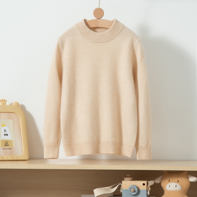 سترة الكشمير للبنين والبنات لون نقي نصف الياقة المدورة الدافئة قاع قميص الطفل البلوز الأطفال الكشمير محبوك سترة الموضة