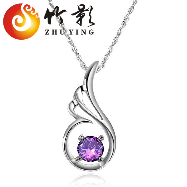 S925 الفضة والمجوهرات بالجملة البلاتين مطلي جناح الملاك قلادة ثمانية قلوب وثمانية سهام الماس السويسري النمط الكوري سلسلة الترقوة قصيرة