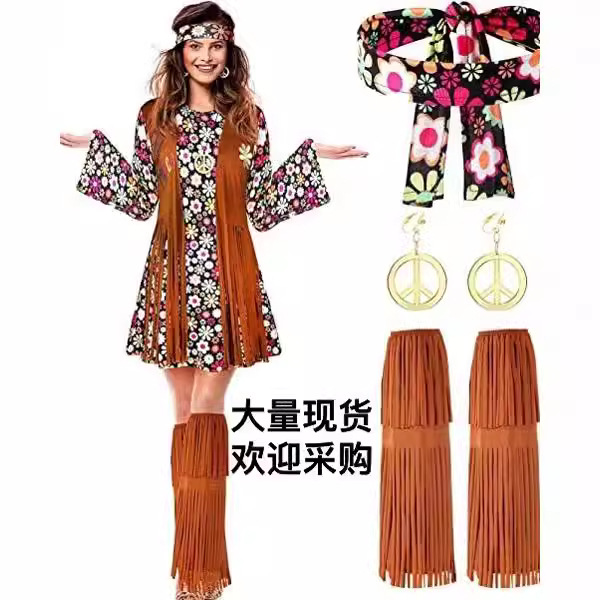 إكسسوارات ملابس السبعينيات فستان هيبي ديسكو للسيدات للفتيات الأوروبي والأمريكي القديم