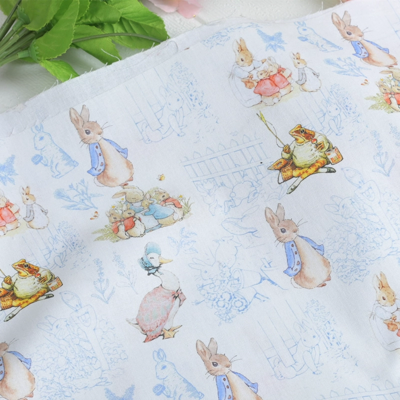 قماش قطني عادي على الطراز الشمالي قماش مطبوع عليه أرنب عتيق مصنوع يدويًا فستان ملابس من القطن الخالص