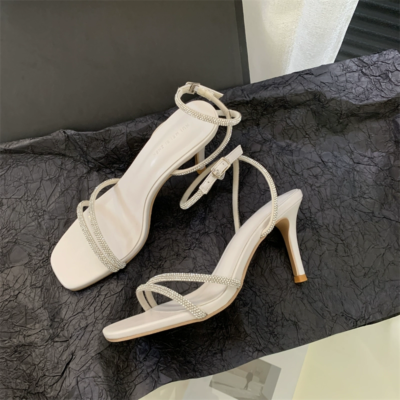 صندل روماني ذو كعب ستيليتو ذو خط واحد من حجر الراين