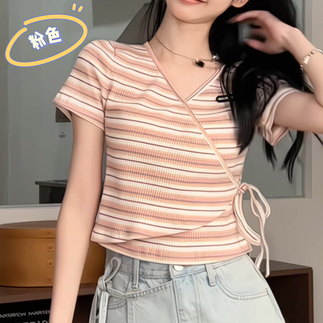 تيشيرت صيفي مخطط الخصر بأكمام قصيرة