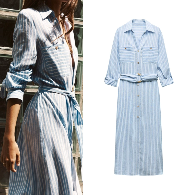 قميص نسائي جديد بأكمام طويلة وطية صدر واحدة من الكتان