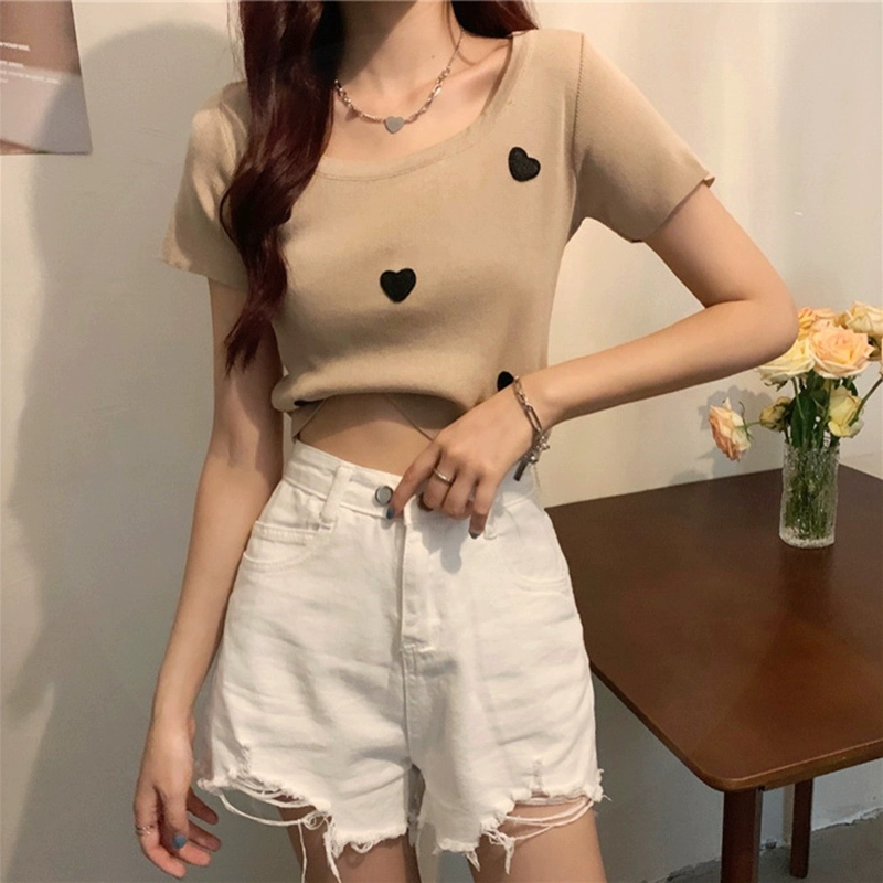 متخصصة عالية الخصر قميص ذي طوق مربع قميص قصير الأكمام