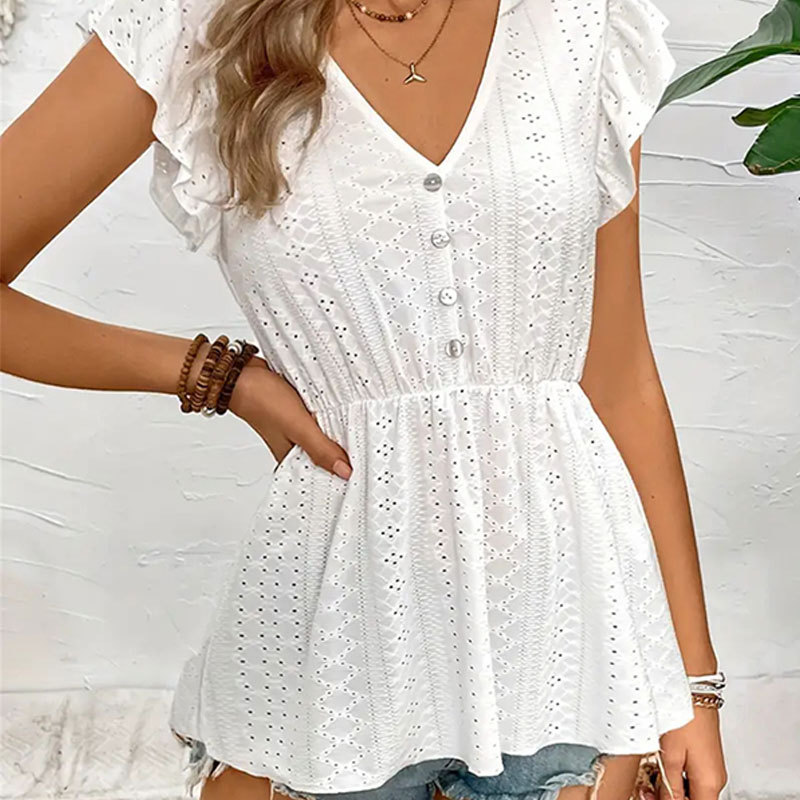 Ins عبر الحدود التجارة الخارجية محبوك الجاكار الجوف مطاطا الدانتيل منظور لوتس ليف تحلق كم أعلى المرأة تي شيرت المرأة الربيع
