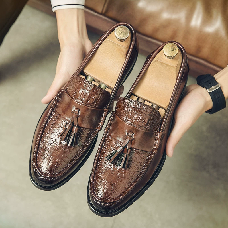 أحذية الخريف الشبابية الراقية كسول قبعة صغيرة رجالية البريطانية كل مباراة الأعمال أحذية جلدية عادية الرجعية شرابة الأحذية العصرية