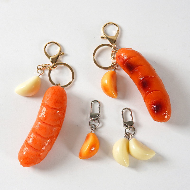 محاكاة تايوان السجق السجق المشوي لحم الخنزير السجق الثوم الغذاء المفاتيح قلادة دمية آلة السلع عبر الحدود في الأوراق المالية