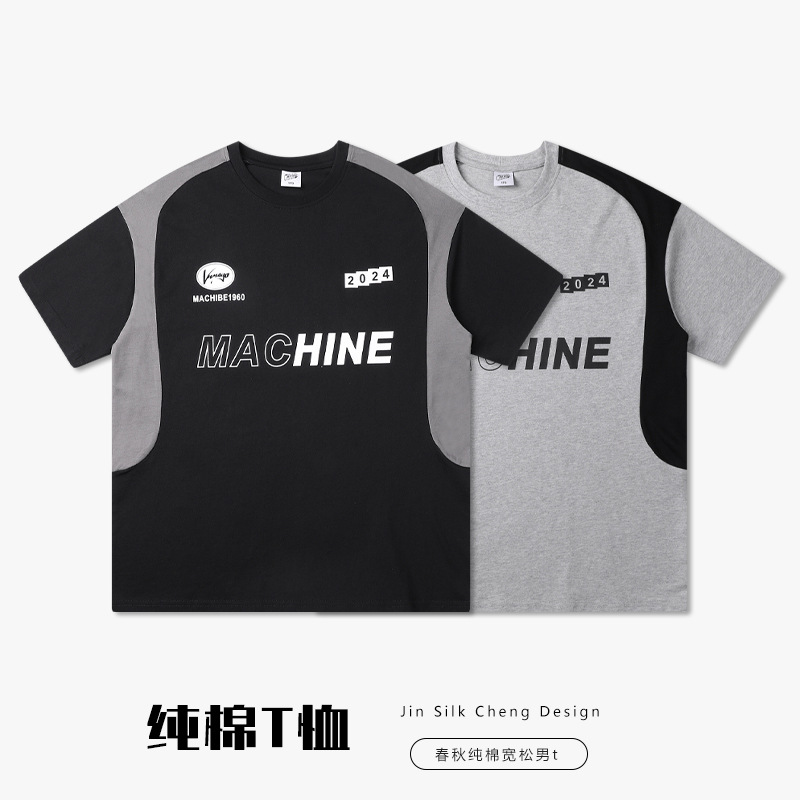 تي شيرت للأولاد صيفي جديد 2024 مصنوع من القطن الخالص الثقيل المتوسط والكبير تي شيرت مطبوع على الموضة بألوان متباينة غير رسمي فضفاض
