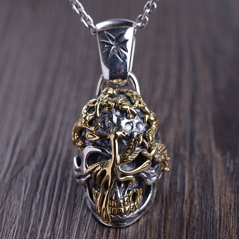 AliExpress عبر الحدود الساخن بيع خمر الحرفية المجوهرات بالجملة الرجال زهرة الجمجمة قلادة