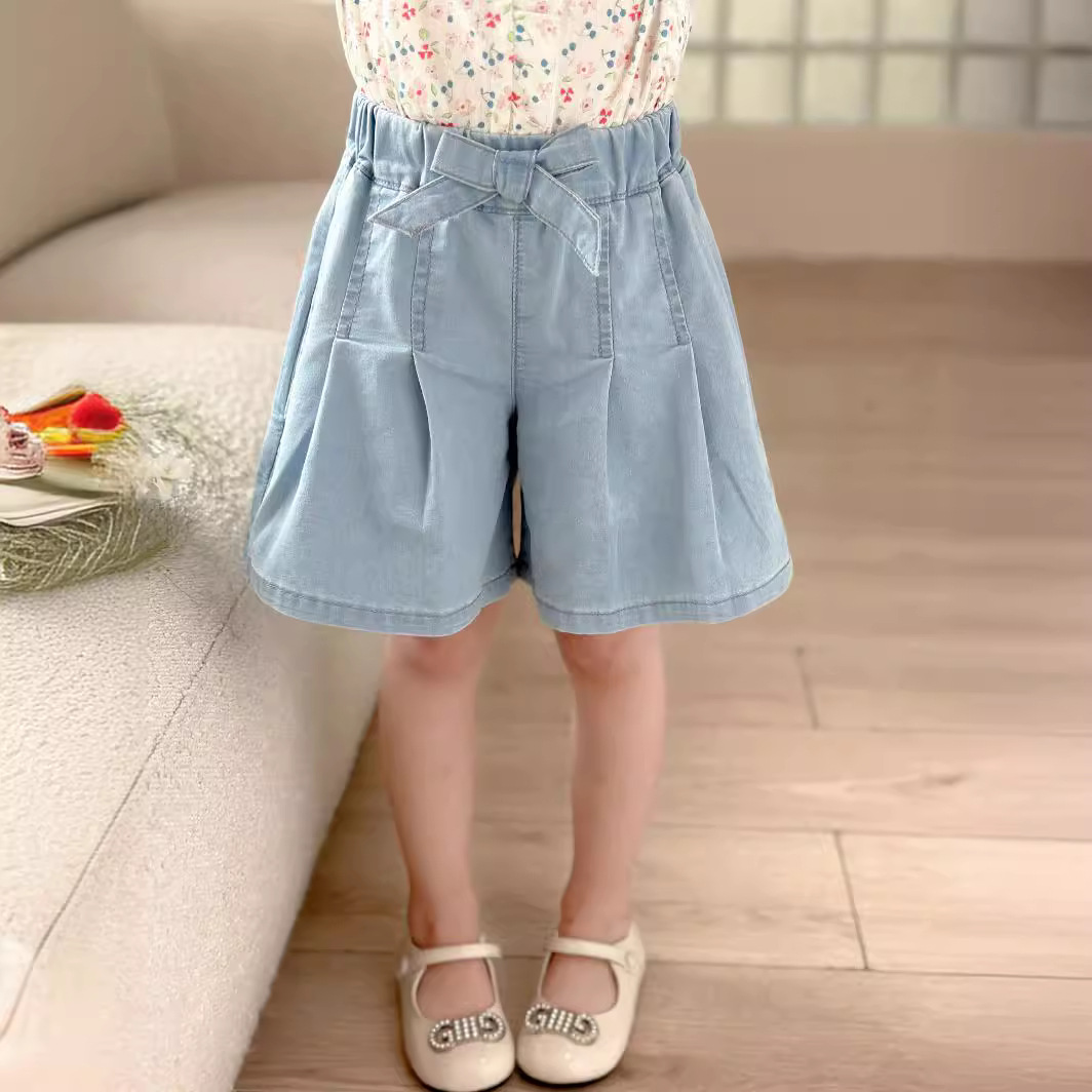 مصنع في المخزون الربيع والصيف الفتيات السراويل عارضة الضوء الأزرق ملابس الأطفال الأطفال الكبيرة القطن ايوسل الدينيم السراويل