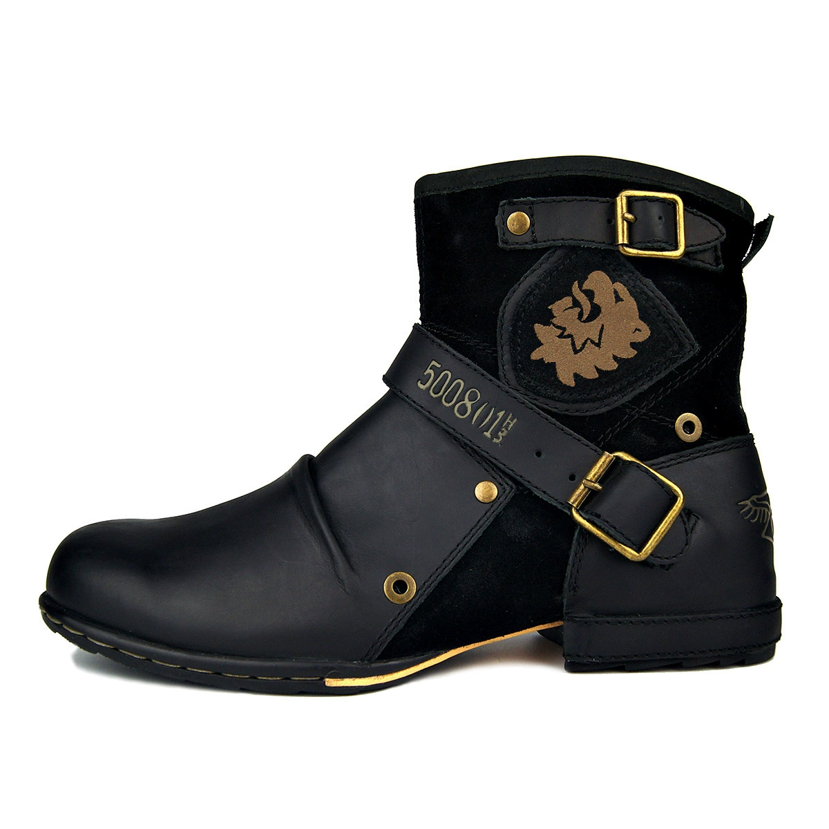 الرجال أحذية أحذية دافئة من الجلد عتيقة دراجة نارية الذكور