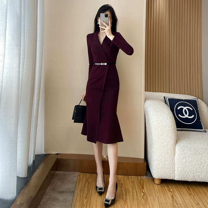 فستان على طراز الآلهة، أنيق ونحيف، ملابس عمل على شكل ذيل السمكة
