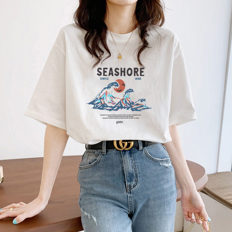 ربيع جديد الثقيلة الكتف القطن قصيرة الأكمام تي شيرت المرأة فضفاضة كل مباراة الحد من العمر التخسيس لباس أبيض قاعدة قميص
