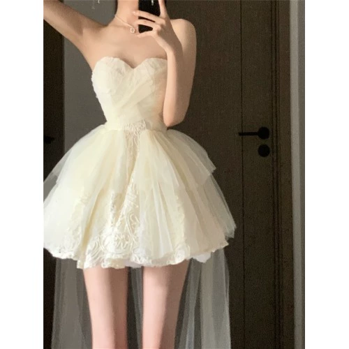فستان أمازون الأوروبي الجديد بدون حمالات للنساء على الطراز الأوروبي والأمريكي مثير بطيات مجوفة قصير متعدد الألوان