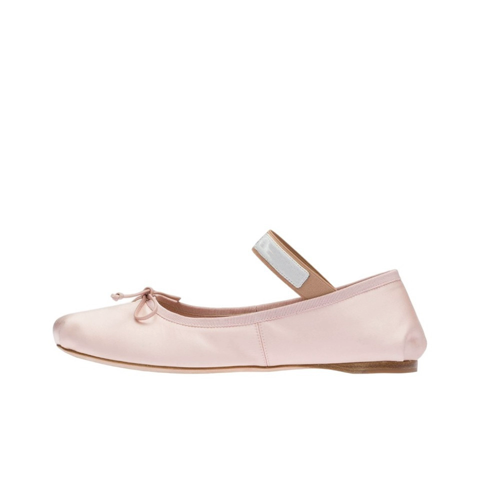 حذاء باليه Miu Satin Mary Jane بعقدة على شكل فيونكة حذاء نسائي جديد بمقدمة مستديرة باللون الوردي حذاء مسطح للسيدات