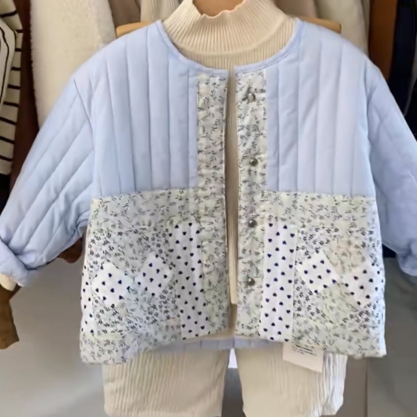 معطف للفتيات على الطراز الكوري مبطن بالقطن لخريف وشتاء 2023 معطف أطفال جديد للفتيات جاكيت دافئ مبطن بخياطة زهرية عصرية