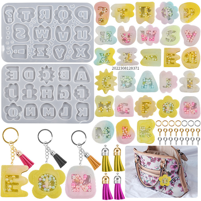 قطرة الغراء DIY الإنجليزية إلكتروني الرمال المتحركة قالب من السيليكون رمز حرف قلادة علامة مفتاح سلسلة قلادة العفن