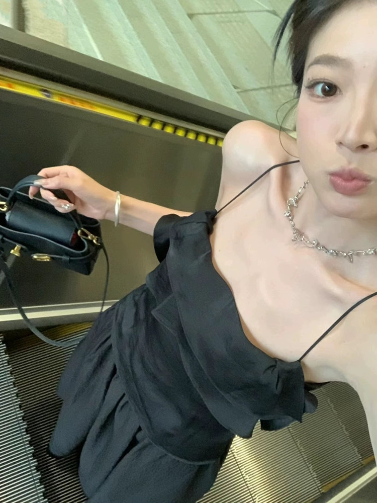 فستان صيفي مثير بياقة ملطخة ومطوي